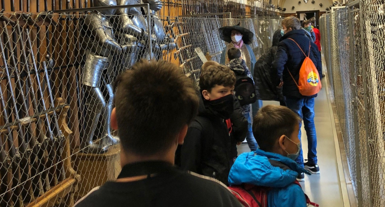 Quer durch verborgene Räume und verwinkelte Gänge gingen die Detektive den Spuren und vielen Hinweisen nach. Die Wahrheit brachte in der Schlossküche alles ans Licht. Der Täter wurde gestellt und der Fall war von den Kindern bravourös gelöst worden. Als Dank für die gute Unterstützung bekamen sie einen Detektivausweis überreicht. Das Highlight war aber, dass sie die Waffenhalle besichtigen konnten.
