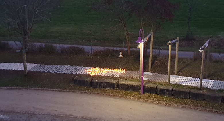 Kinder und Jugendliche haben einen Sternenkometen mit Kerzengläser auf dem Spielplatz vor Einbruch der Dunkelheit aufgestellt. Als alle 100 Kerzen entzündet waren, strahlte der Komet in die Nacht hinein. Ein kleines Zeichen für die Bewohnerinnen, Bewohner und Mitarbeitenden von St. Johann: der Advent bringt Licht ins Dunkel.