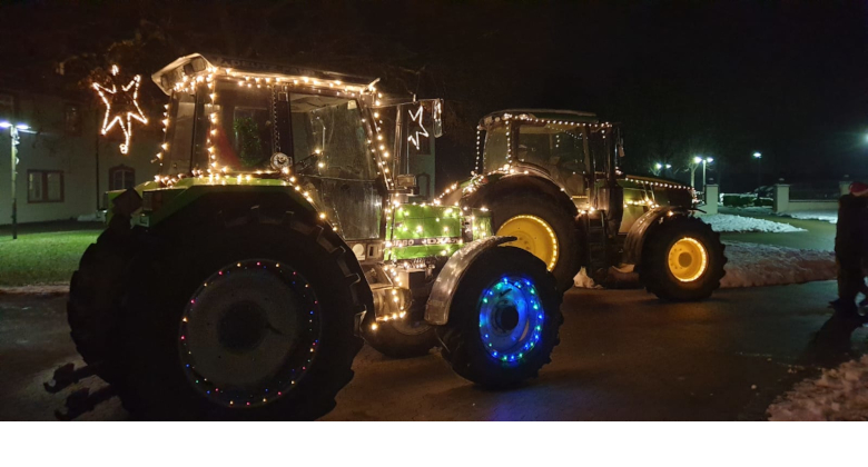 Traktoren, mit vielen bunten Lichterketten geschmückt, fahren im Konvoi laut hupend in den Schlosshof von Heudorf. Sie umrunden den Innenhof und Kinder und Jugendlichen begrüßen sie voller Freude und Jubel. Die Landwirte wollen mit ihrer Aktion Hoffnung schenken und für kleine Lichtblicke während der Coronazeit sorgen. Kleine Geschenktüten, liebevoll mit Weihnachtsgebäck, Orangen und Nüsse sowie Spielsachen, werden an die anwesenden Kids ausgeteilt. Höhepunkt für die Kids war aber, dass sie in die Fahrerkabinen reinstiegen durften. Ein supertolles Feeling.