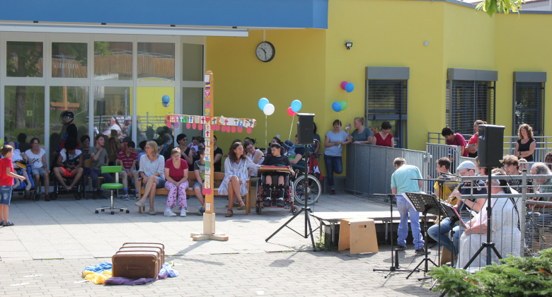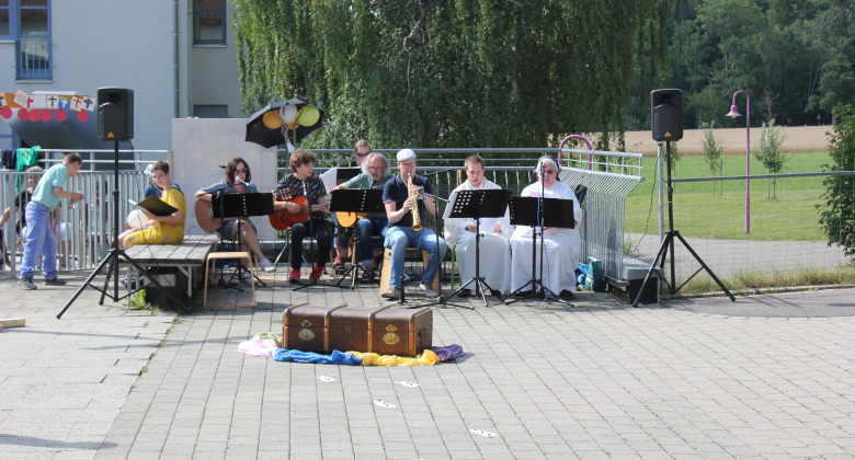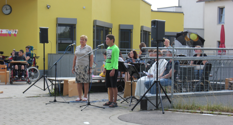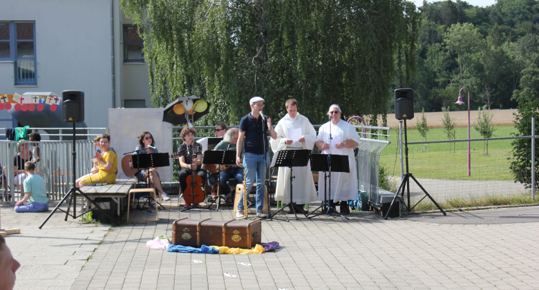 Am letzten Schultag wurde auf dem Pausenhof ein gemeinsamer Abschlussgottesdienst für die Schulgemeinschaft gehalten. Gleichzeitig wurden auch die Entlassschüler verabschiedet. Mit der Frage „Was bleibt zurück, wenn ihr jetzt in eine neue Zukunft geht“ wurde nochmals über das vergangene Schuljahr nachgedacht und überlegt, welche Spuren der Scheidenden bei uns in Erinnerung bleiben. Die Schüler bekamen einen kleinen Brief mit der Geschichte „Spuren im Sand“ und einem Segensspruch. Anschließend durften sie Luftballone mit ihrem Namen in den Himmel steigen lassen. Unsere ukrainischen Gäste, die ebenfalls mitfeierten, sangen ein Lied aus ihrer Heimat und wir konnten die Sehnsucht heraushören, dass sie Heimweh danach haben.