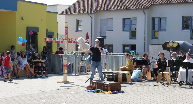 Am letzten Schultag wurde auf dem Pausenhof ein gemeinsamer Abschlussgottesdienst für die Schulgemeinschaft gehalten. Gleichzeitig wurden auch die Entlassschüler verabschiedet. Mit der Frage „Was bleibt zurück, wenn ihr jetzt in eine neue Zukunft geht“ wurde nochmals über das vergangene Schuljahr nachgedacht und überlegt, welche Spuren der Scheidenden bei uns in Erinnerung bleiben. Die Schüler bekamen einen kleinen Brief mit der Geschichte „Spuren im Sand“ und einem Segensspruch. Anschließend durften sie Luftballone mit ihrem Namen in den Himmel steigen lassen. Unsere ukrainischen Gäste, die ebenfalls mitfeierten, sangen ein Lied aus ihrer Heimat und wir konnten die Sehnsucht heraushören, dass sie Heimweh danach haben.